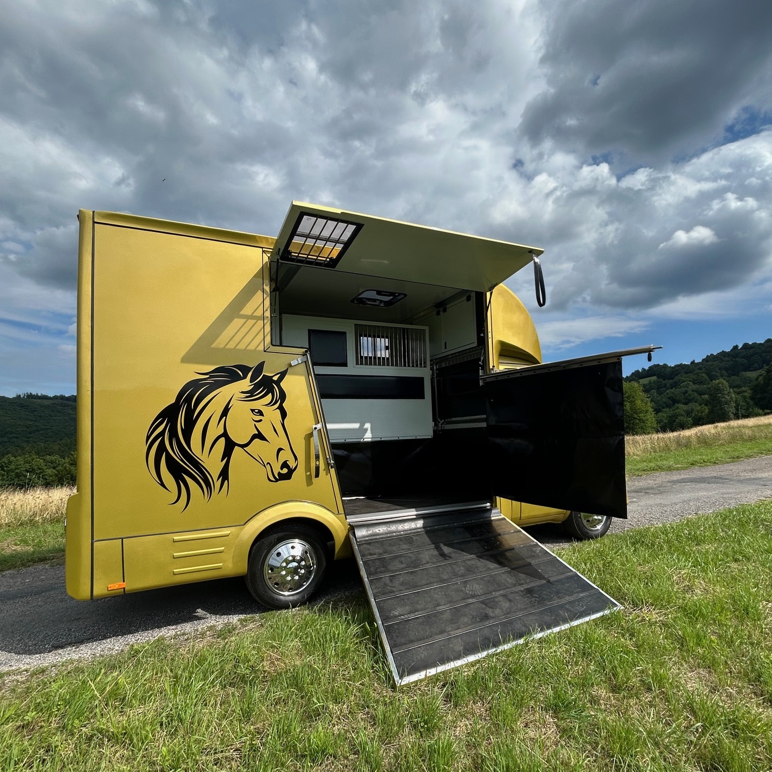 Rok výroby 2022 pre 2 kone a 3 osoby.Najazdených 55 000km.Je prispôsobený pre maximálnu bezpečnosť a comfort koní pri jazde. Vhodný na prepravu žrebcov , kobyl so žriebätami.Veľká priestranná sedlovna, nová kvalitná nadstavba (HARAS SYSTEM).Prevozná hmotnosť vozidla 2 600 kg.Tažné zariadenie pre príves s celkovou hmotnosťou 3500 kg.Kabína disponuje vzduchovou odpruženou sedačkou vodiča, ABS (protiblokovací systém bŕzd)ESP (elektronický stabilizačný program),Airbag vodiča,